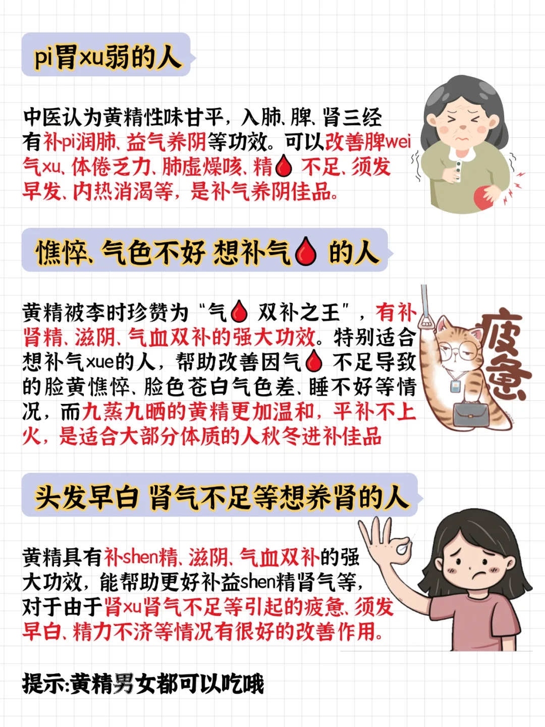 8.病后需恢复体力人群。