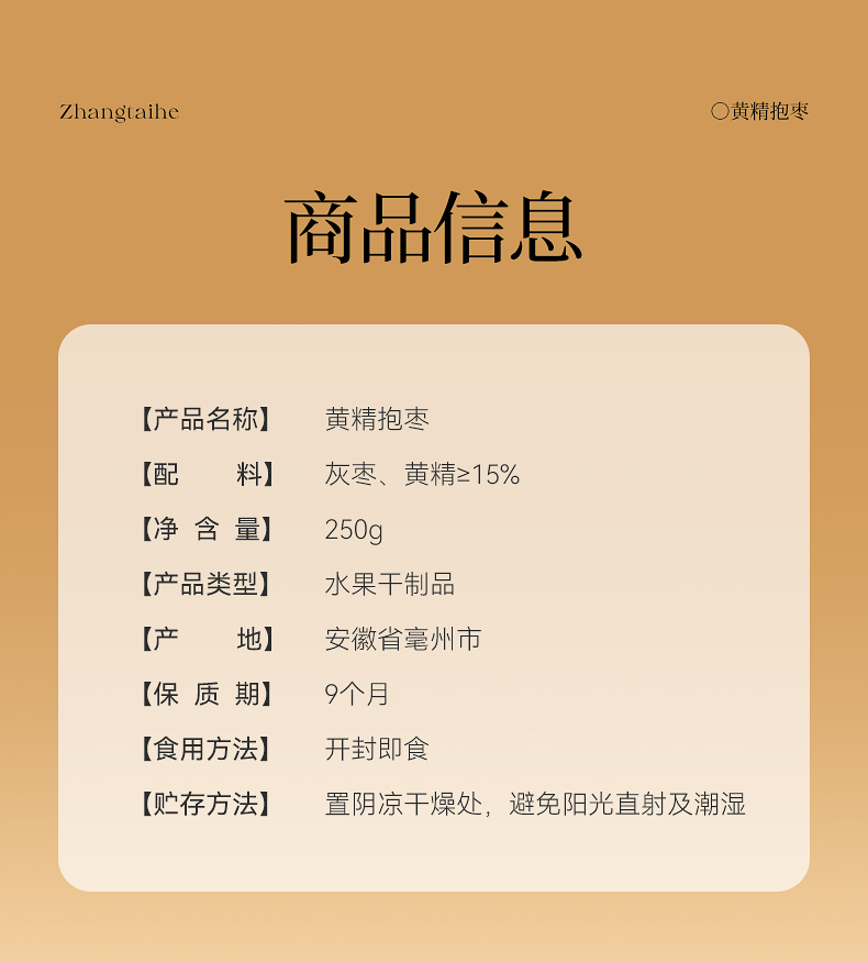 3.配料只有灰枣和黄精,黄精添加量≥15%,没有色素、香精、防腐剂,甜度全来自食材本身。